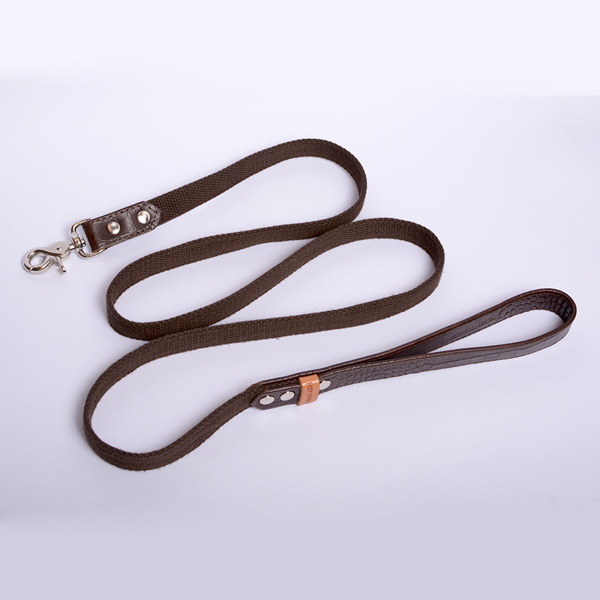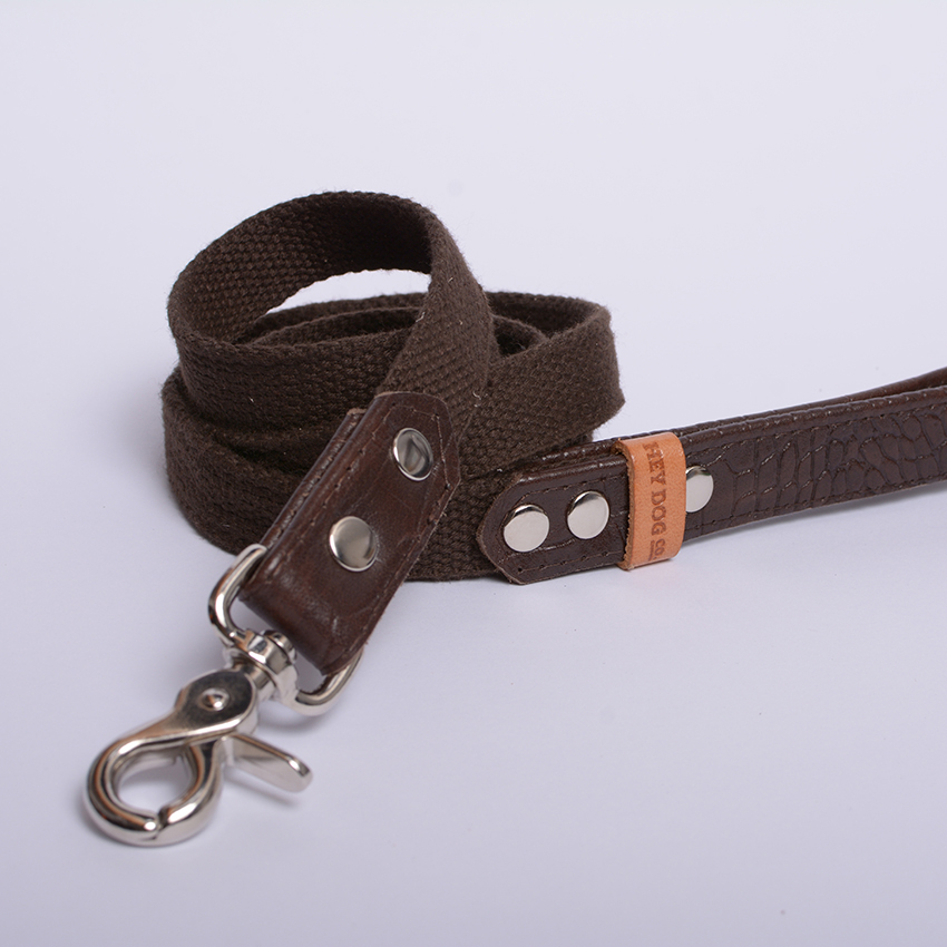 Our leashes are light and comfortable to use. Leather color: dark brown. Tape color: dark brown. Hardware is made of solid brass, polished to a high gloss. We suggest setting up this leash with a HEY DOG Choco Croco collar, making your dog stylish and exceptional.