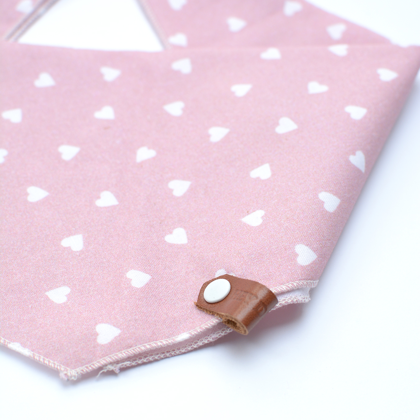 Bandana dla psa lub kota, wykonana z bawełny. Różowa bandana w drobne, białe serca. Skompletuj ją z obrożą Hey Dog Co.  i stwórz stylowy zestaw dla Twojego pupila.