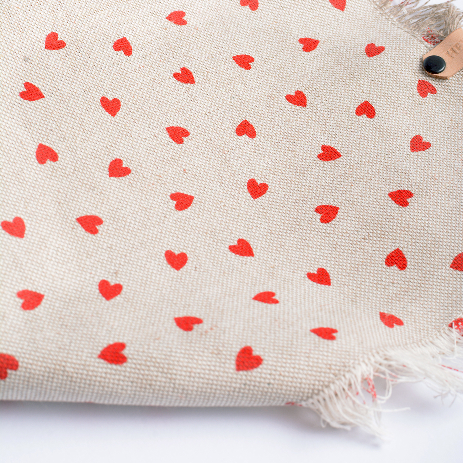 Lniana bandana w urocze, drobne, czerwone serduszka. Ta bandana to Twój mały manifest miłości.