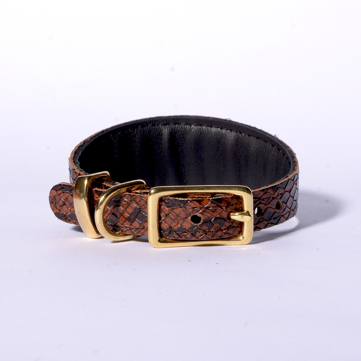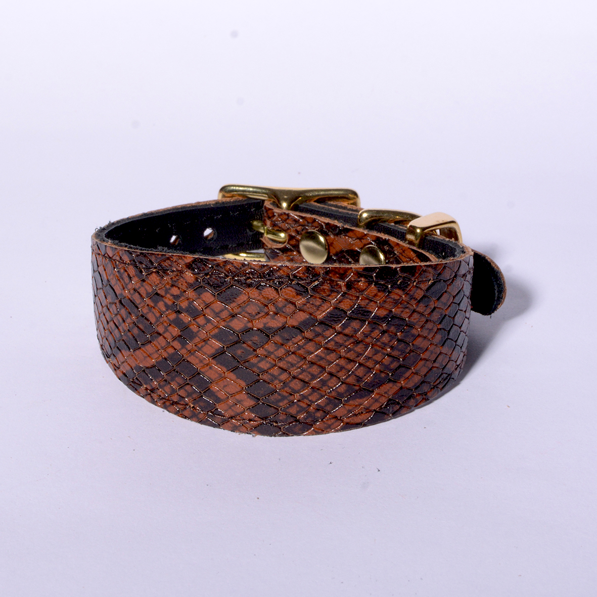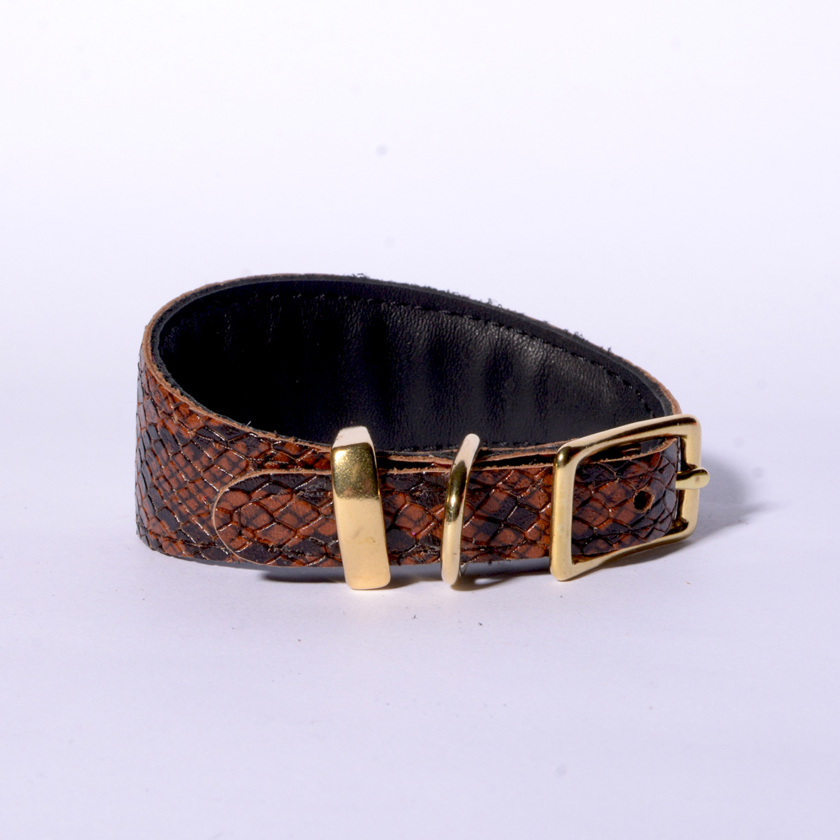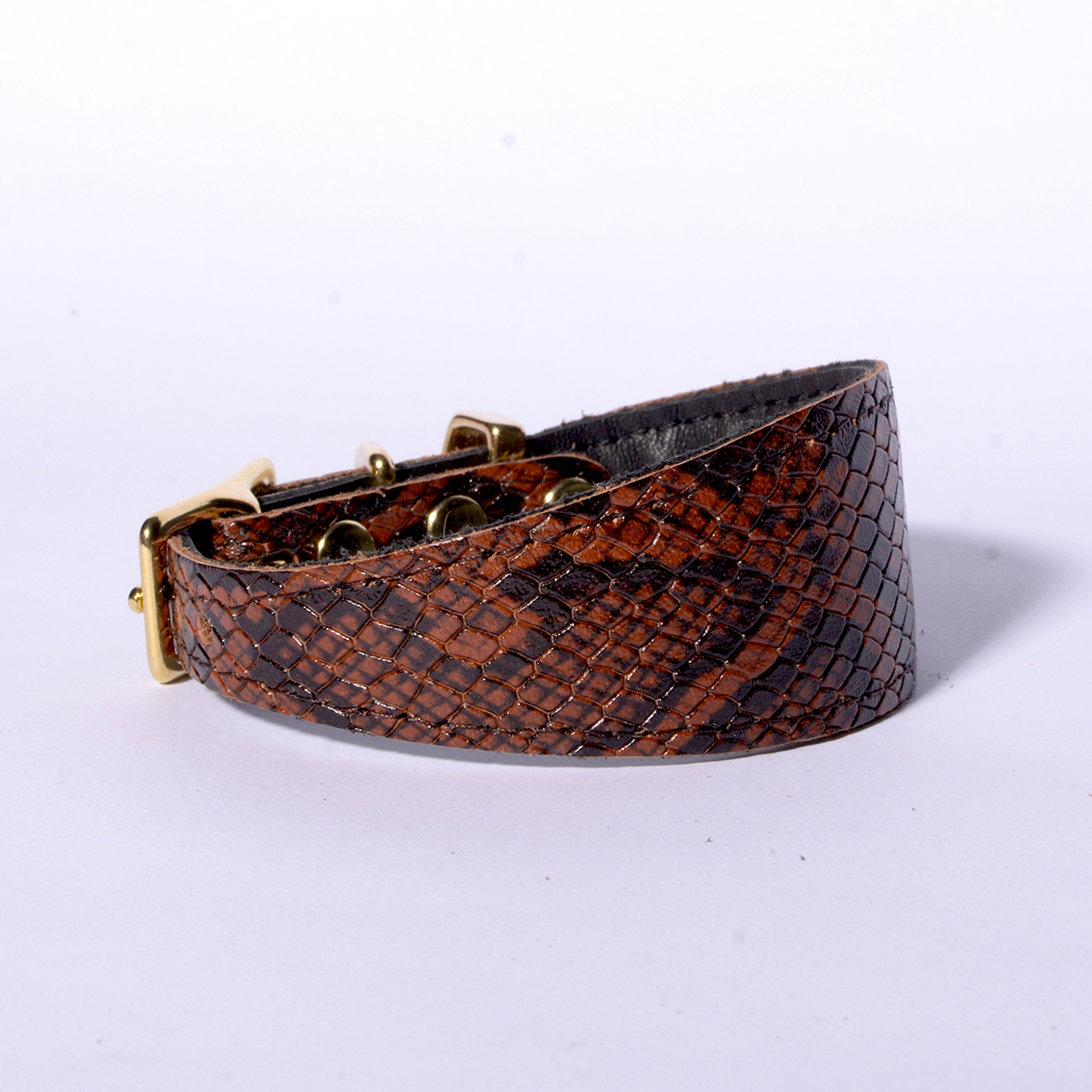 Obroża Snakeskin brown, klasyczny, obły kształt dla charta